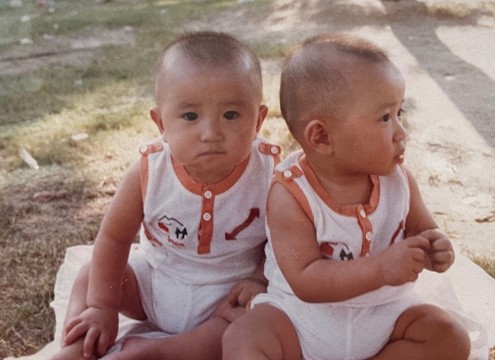 幼少期の記憶はあまりありませんが、母の話によると比較的活発な子供だったようです。双子の弟と写真を撮るときもいつもふざけてポーズをとっているのが私でした。おかげで、小さいころの写真を見ると、弟とよく写っているのですが(一卵性双生児なので見た目はそっくりです)、今でも間違わずに私と弟を見分けることができます。