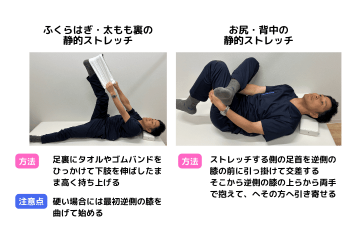 お尻、太もも、ふくらはぎを柔らかくする静的ストレッチ