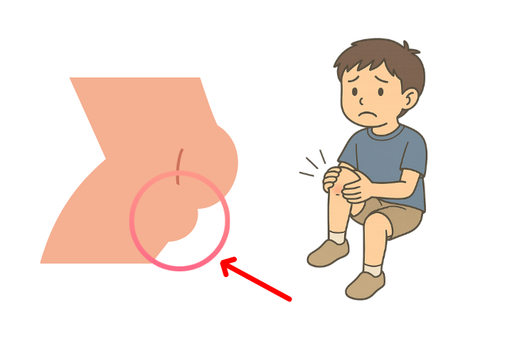 症状としては、膝の皿の下にある脛骨粗面が徐々に突出し、痛みが生じます。休むと痛みはなくなりますが、スポーツを再開すると痛みが再発します。