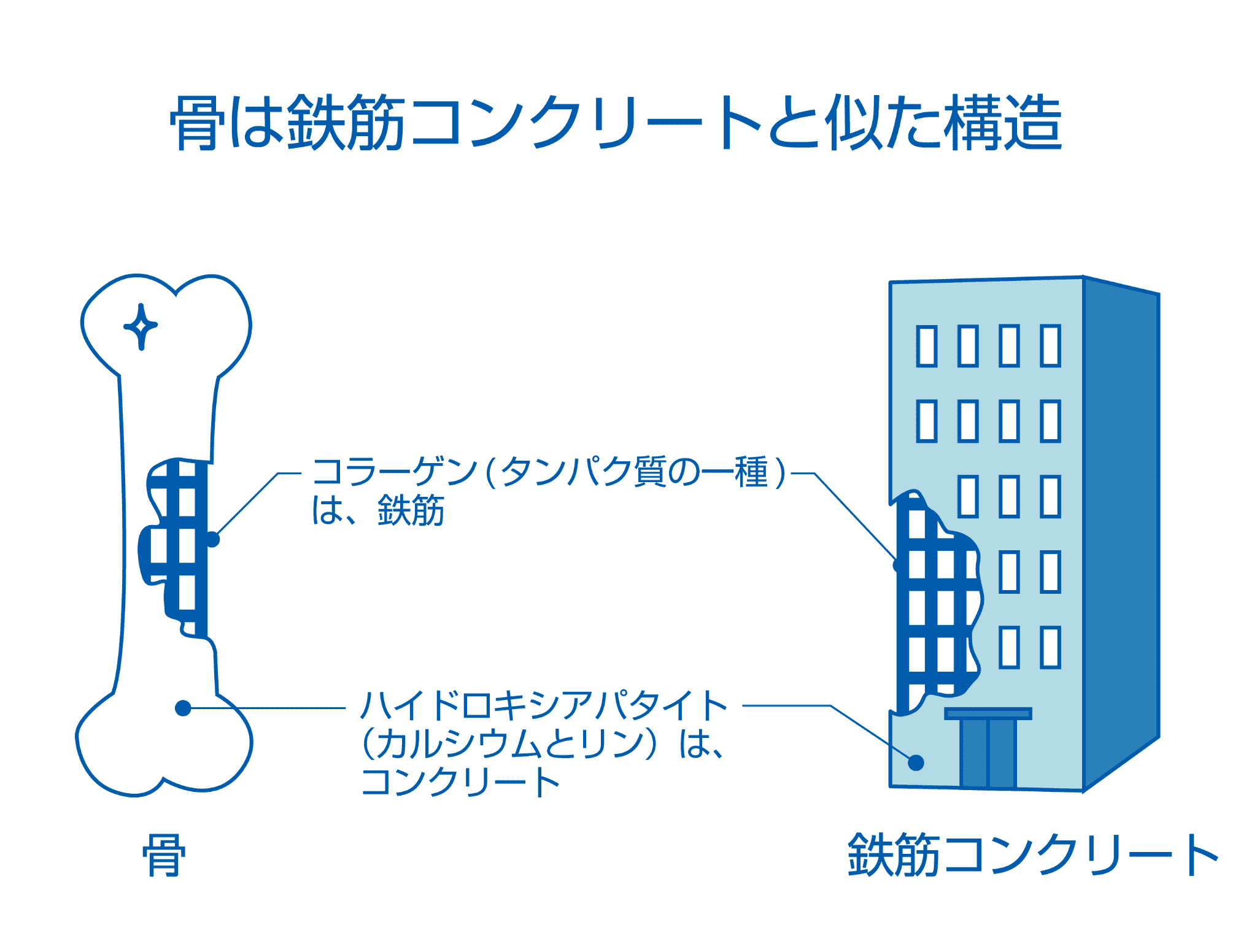 イメージしやすい例えとして、骨は鉄筋コンクリートの建物によく似ています。
