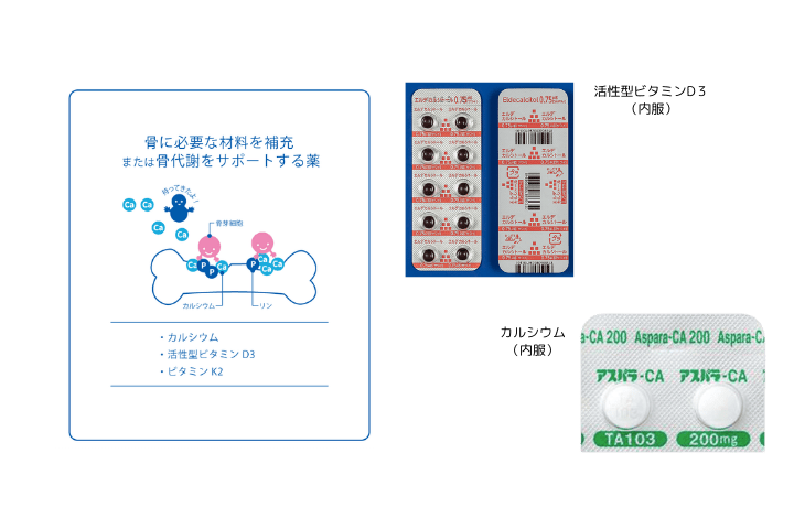 骨に必要な材料を補充、または骨代謝をサポートする薬