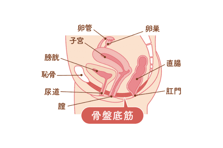 産後の尿もれは、出産によって骨盤底筋(こつばんていきん)がダメージを受けることで起こります。