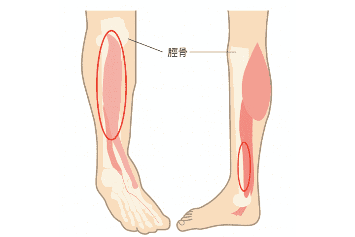 ひらめ筋・後脛骨筋・長趾屈筋などの足関節を底屈する筋や筋膜の繰り返し加えられるる牽引による脛骨の骨膜の炎症です。