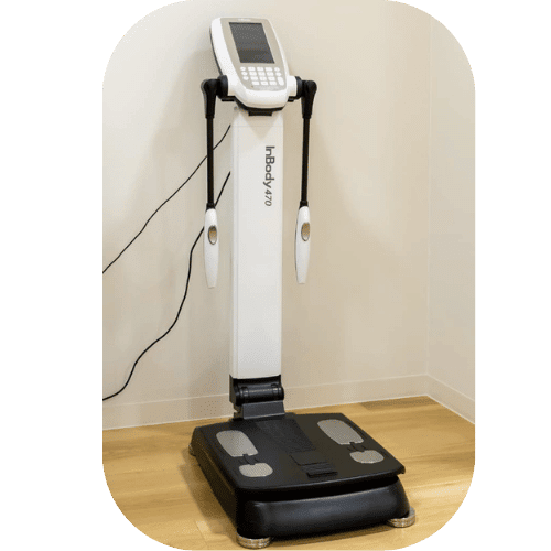 リハビリ開始時や経過中に、体組成計による筋肉量・水分量・体脂肪量・バランス評価を実施しています。